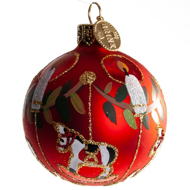 Det flotte motiv på favoritkuglen fra 2019 minder os om jul i gamle dage, hvor gyngehesten var et populært stykke legetøj til børn i det bedre borgerskab omkring århundredeskiftet.