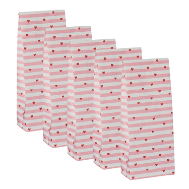 Ib Laursen klodsbundspose m/røde hjerter og lyserøde striber H30,5 cm - 5 stk.