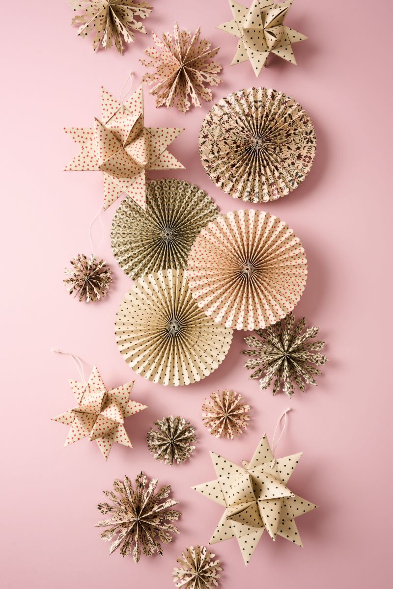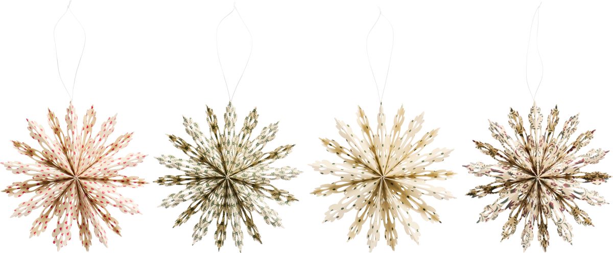 De smukke detaljerede snefnug i papir vil pynte flot på juletræet eller i vinduet.