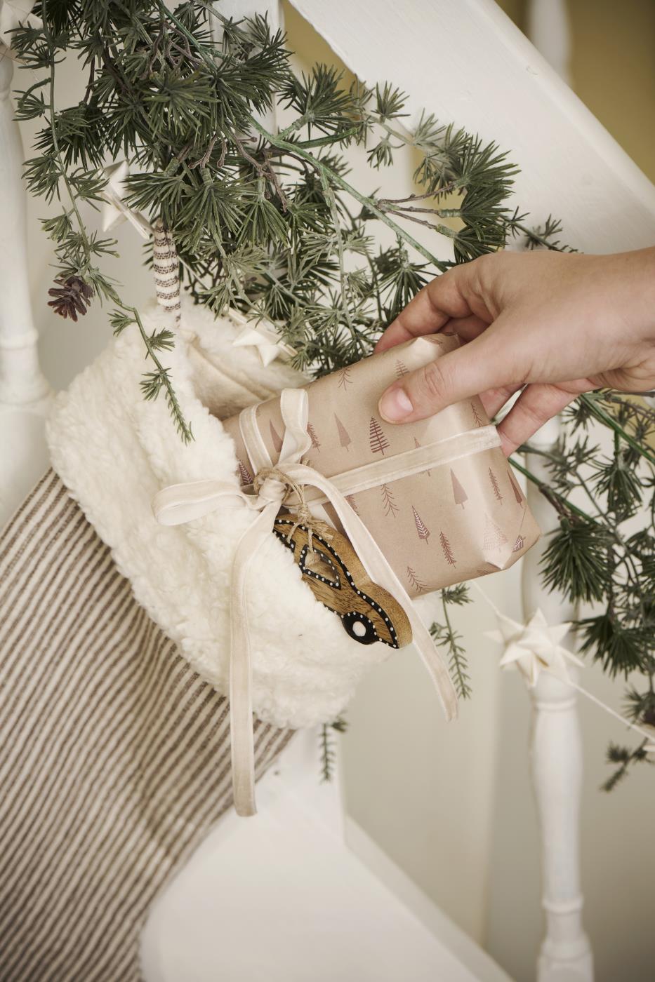 Velourbåndet er perfekt både til gaveindpakning samt til dekoration på ophæng og stager fra Ib Laursen.