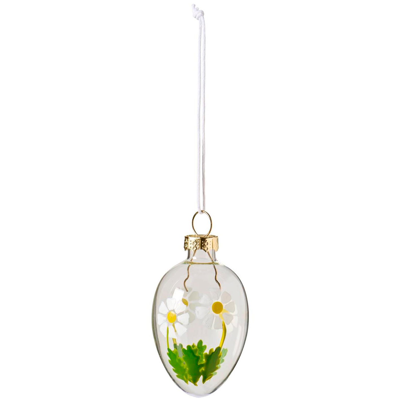 De elegante påskeæg i glas er flot dekoreret med blomstertryk.