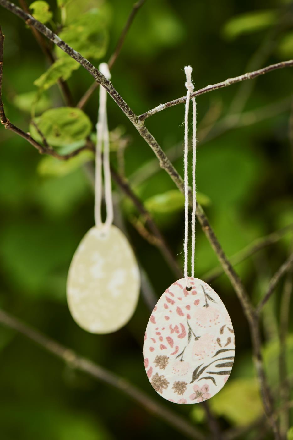 De fine påskeæg i papir med mønster vil tilføre en elegant og festlig stemning til dine påskedekorationer.