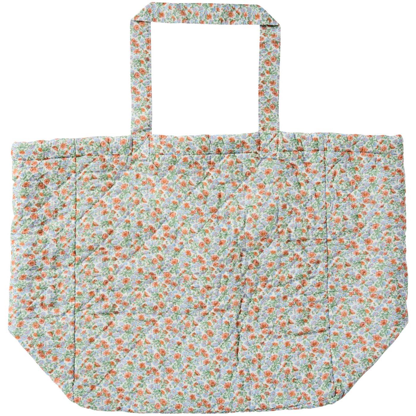 Ib Laursen quiltet taske m/lyseblå og rust blomster