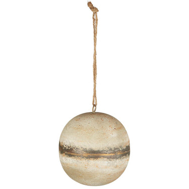 Kuglen er fremstillet i metal og har et smukt, tidløst udtryk, der gør den ideel som dekoration i vinduet, på juletræet eller som en del af en hyggelig ophængskæde.