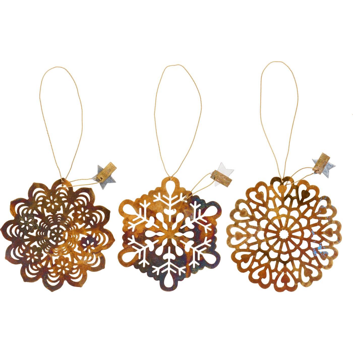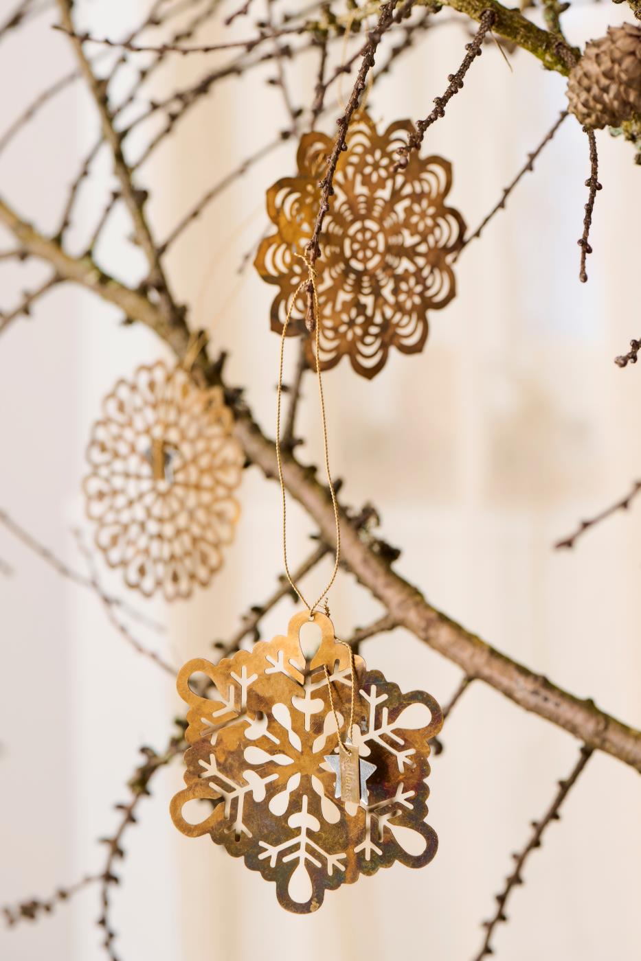 De tre forskellige designs har hvert sit flotte udstansede mønster med mange fine detaljer. Snekrystallerne egner sig perfekt til ophæng på juletræet, i vinduet eller på en dekorativ gren.