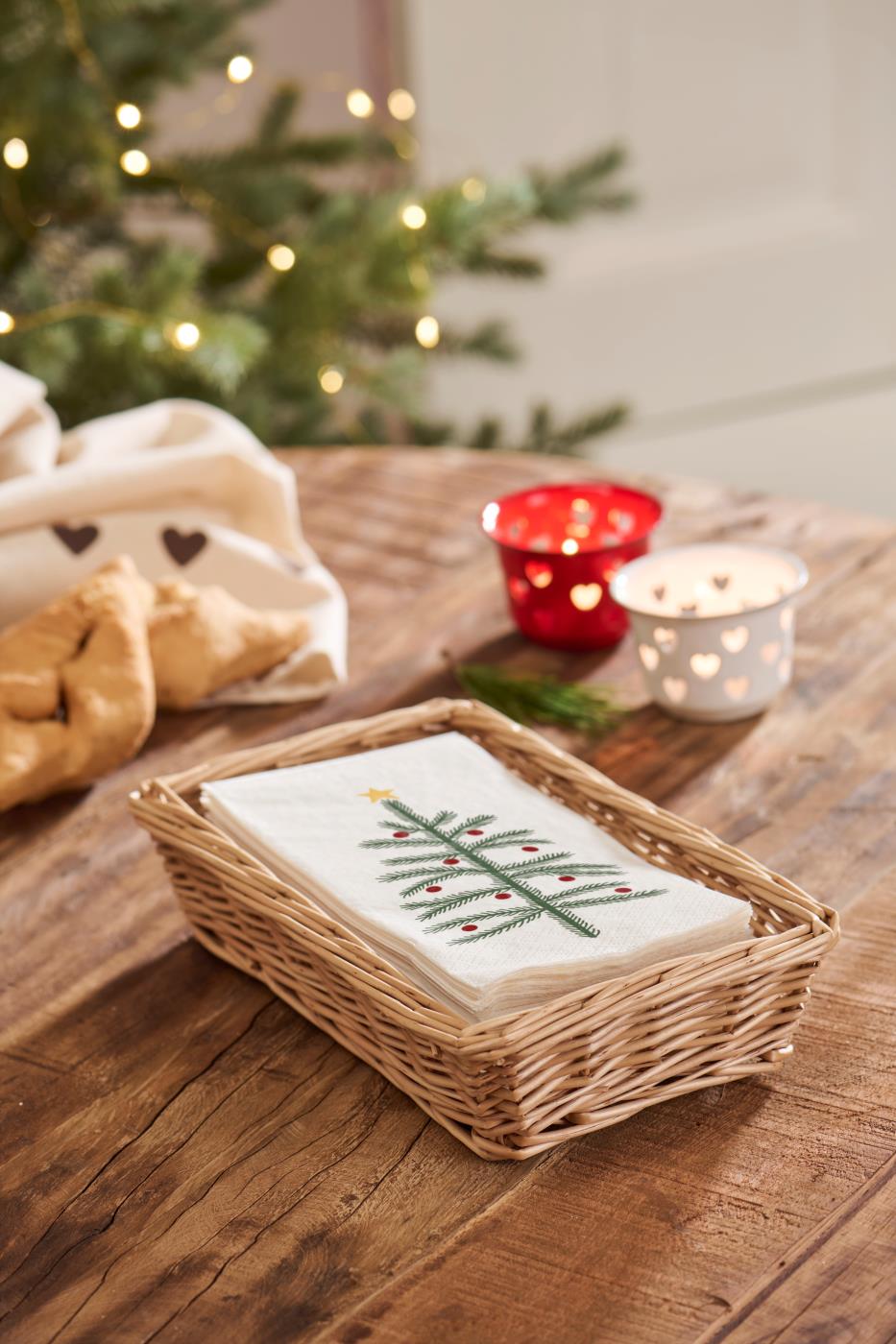 En stilfuld og praktisk opbevaringsløsning til dine yndlingsservietter. Kurven er ideel til både hverdag og festlige lejligheder, hvor den tilføjer et naturligt og rustikt element til bordet.
