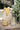 Stagen har blade i glasset, som giver en smuk effekt når man tænder et lys i stagen.