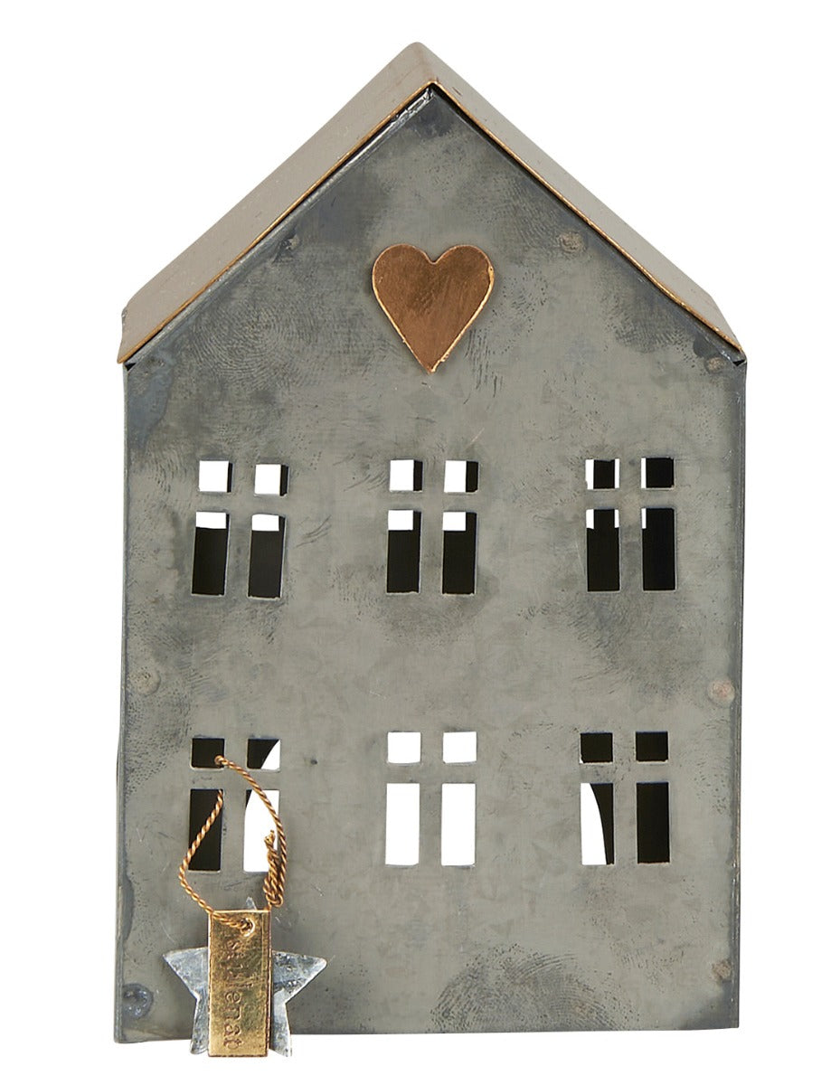Ib Laursen ´Stillenat´ hus t/fyrfadslys m/6 vinduer og messing hjerte