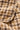 Smukt quiltet tæppe med brunt ternet mønster.