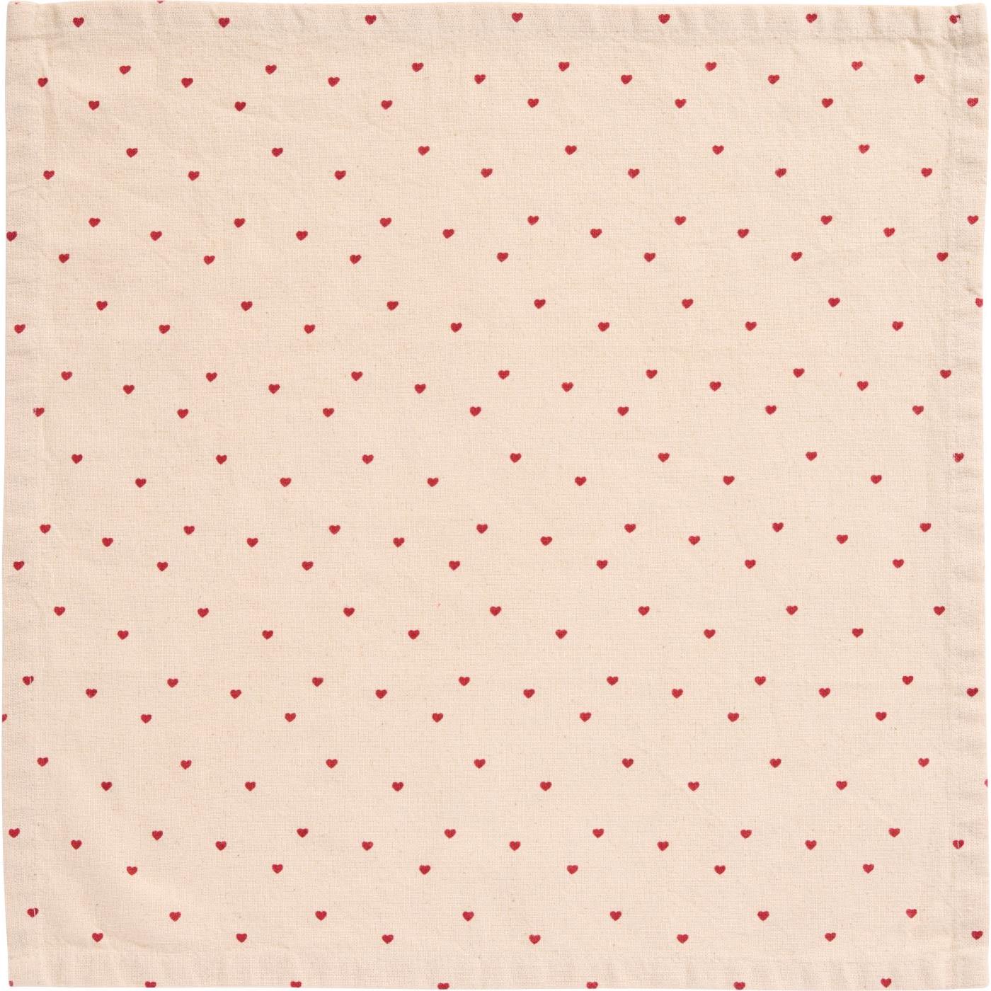 Ib Laursen ´Valentin´ stofserviet natur m/røde hjerter