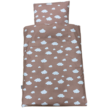Sengetøjet er dekoreret med fine skyer.