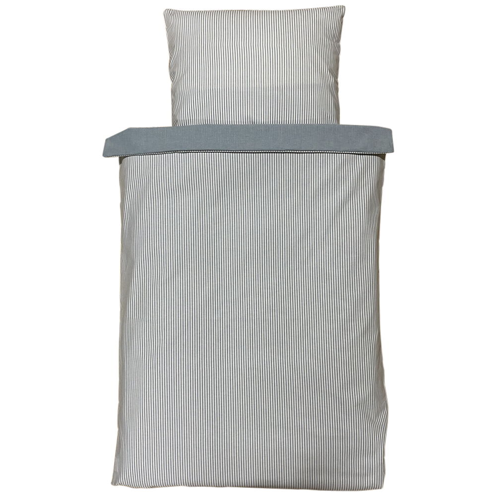 Gør sengetiden ekstra tryg og hyggelig med dette fine juniorsengetøj fra Nørgaard Madsen, i et klassisk design som er ensfarvet på den ene side og stribet på den anden.