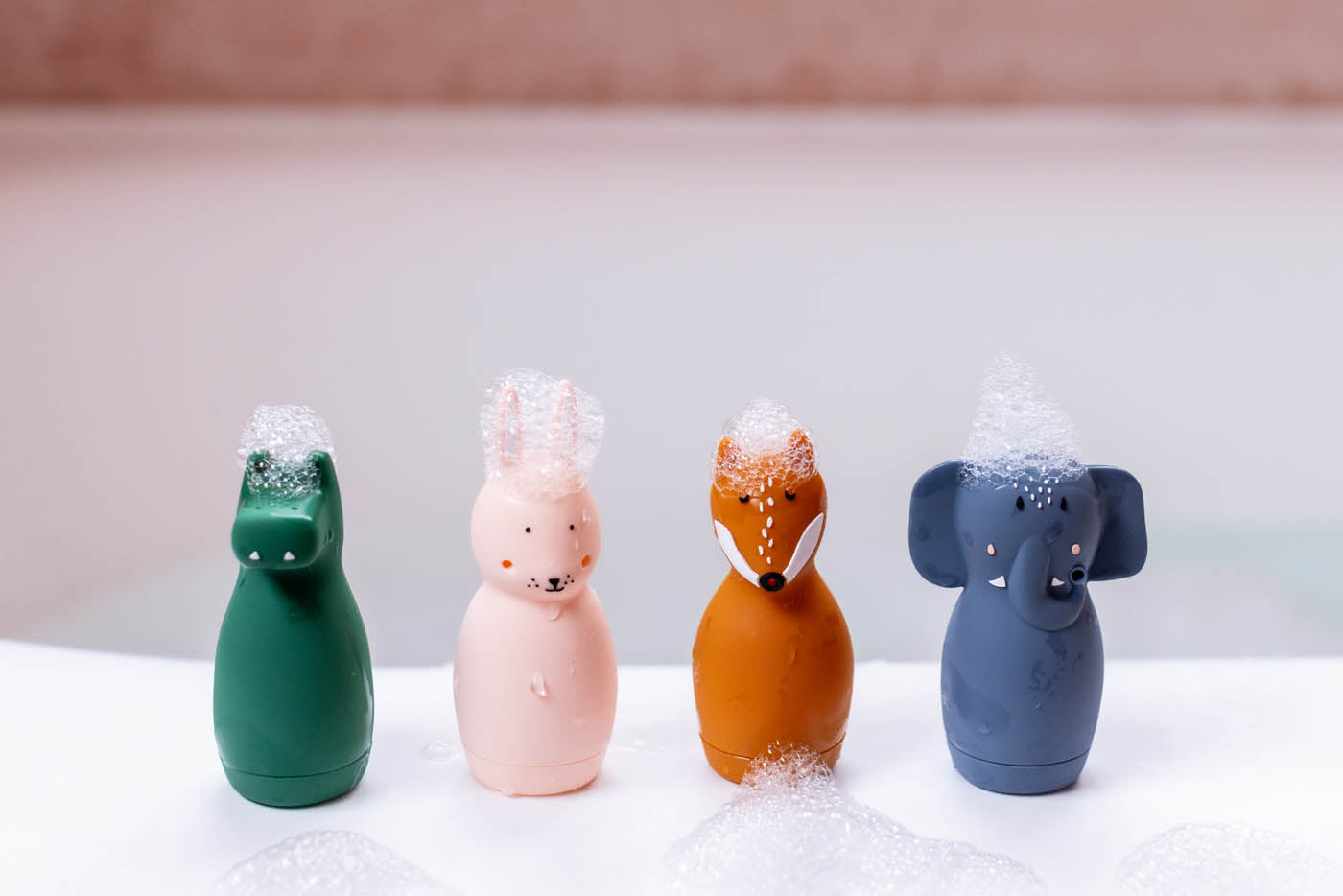 Gør badetid til en fest med disse bløde dyrevenner i glade farver.