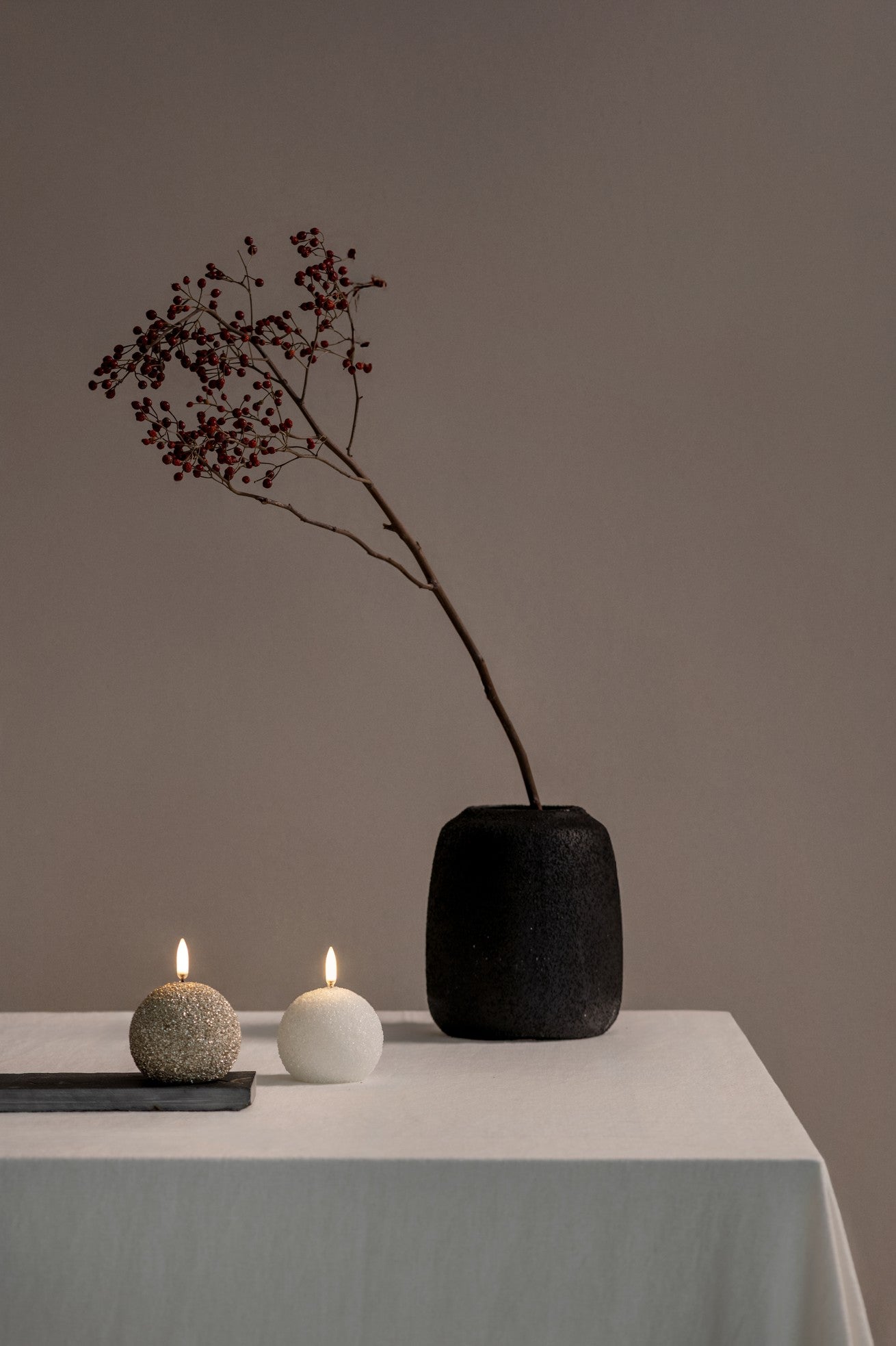 Lyset udstråler charme og elegance med det flotte glitter. En perfekt tilføjelse på julebordet, hylden eller som en lille gave, for at skabe den helt rigtige julestemning.