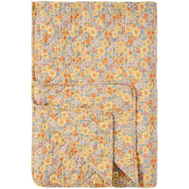 Smukt quiltet tæppe med sødt blomsterprint i friske sommerfarver.