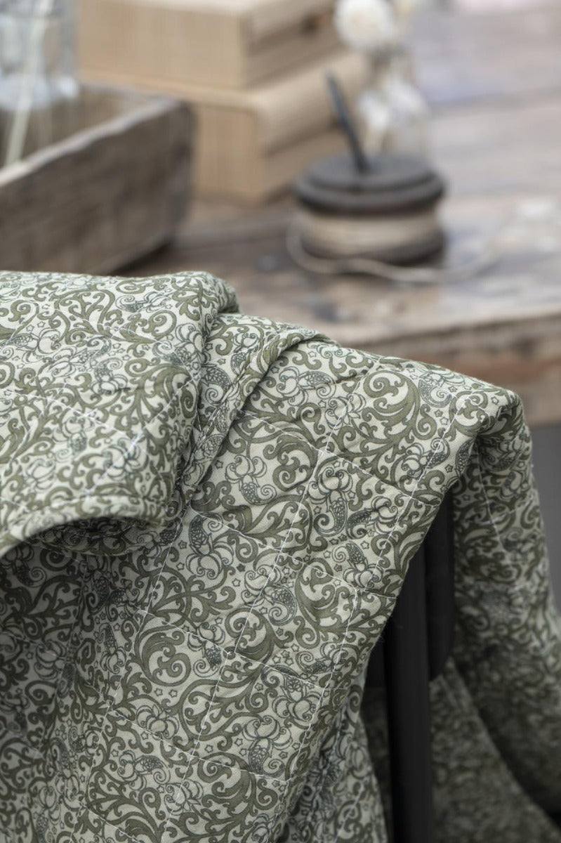 Lækkert grønt quiltet tæppe fra Ib Laursen med mønster i smukke grønne nuancer.