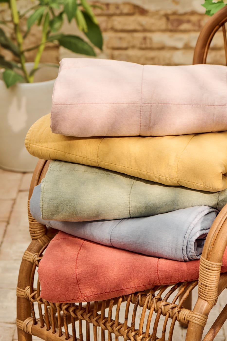 Lækkert blødt quiltet tæppe i et smart ensfarvet stenvasket look.