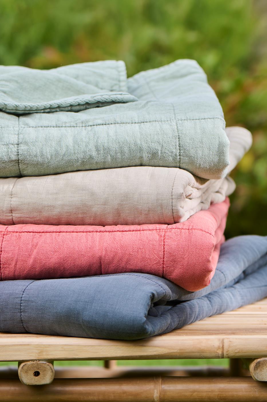 Lækkert blødt quiltet tæppe i et smart ensfarvet stenvasket look.