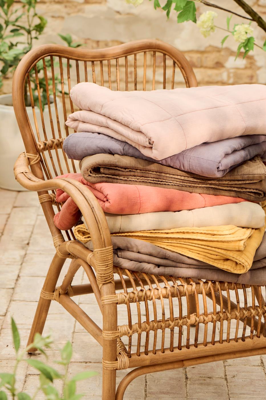 Lækkert blødt quiltet tæppe i et smart ensfarvet stenvasket look.