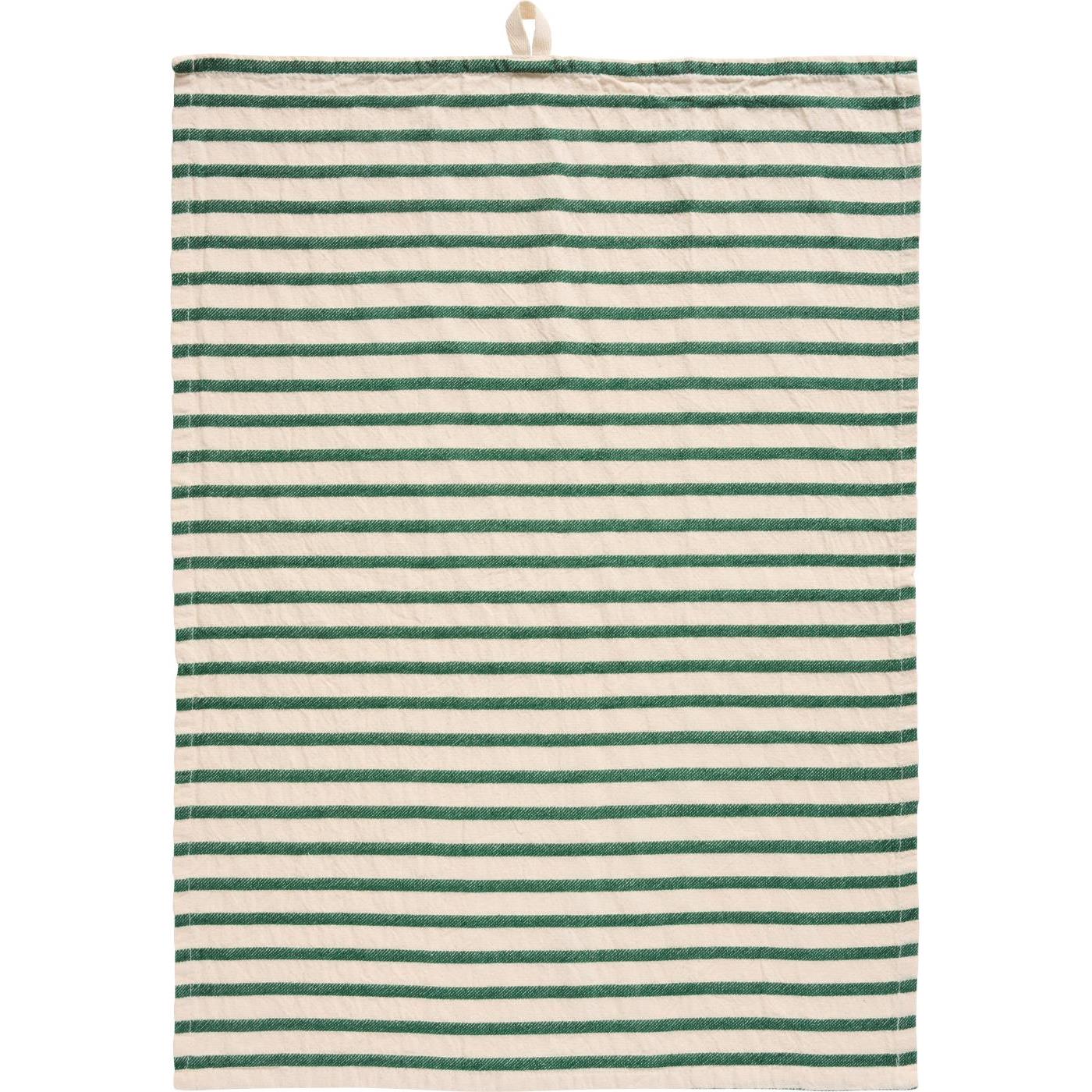 Flot naturfarvet viskestykke med mørkegrønne striber på tværs.