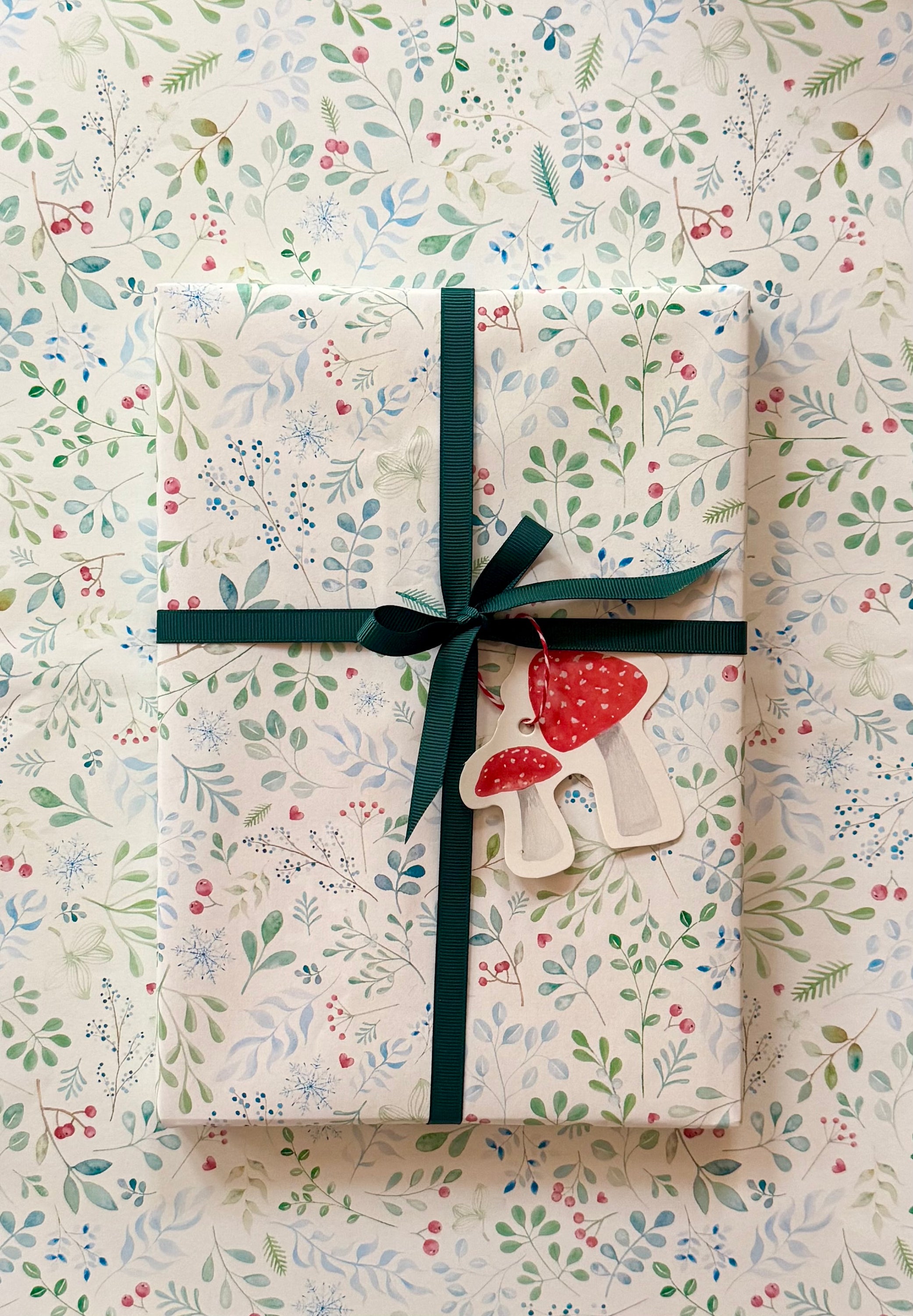 Flot gavepapir med originaldesign med motivet ‘White Winter Leaf’ af Annemette Voss Fridthjof.