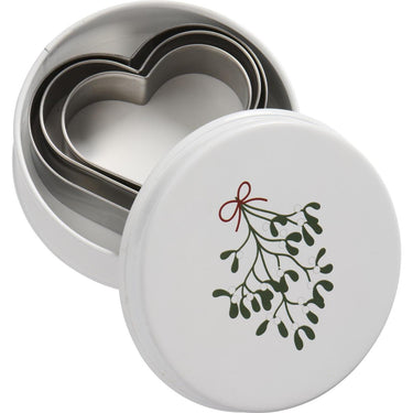 Ib Laursen dåse m/Mistelten på låget og 3 hjerte-kageudstikkere