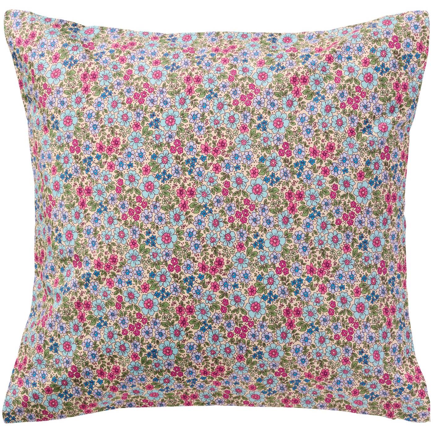 Ib Laursen pudebetræk 60x60 cm creme m/turkis, blå, fuchsia og lilla blomster