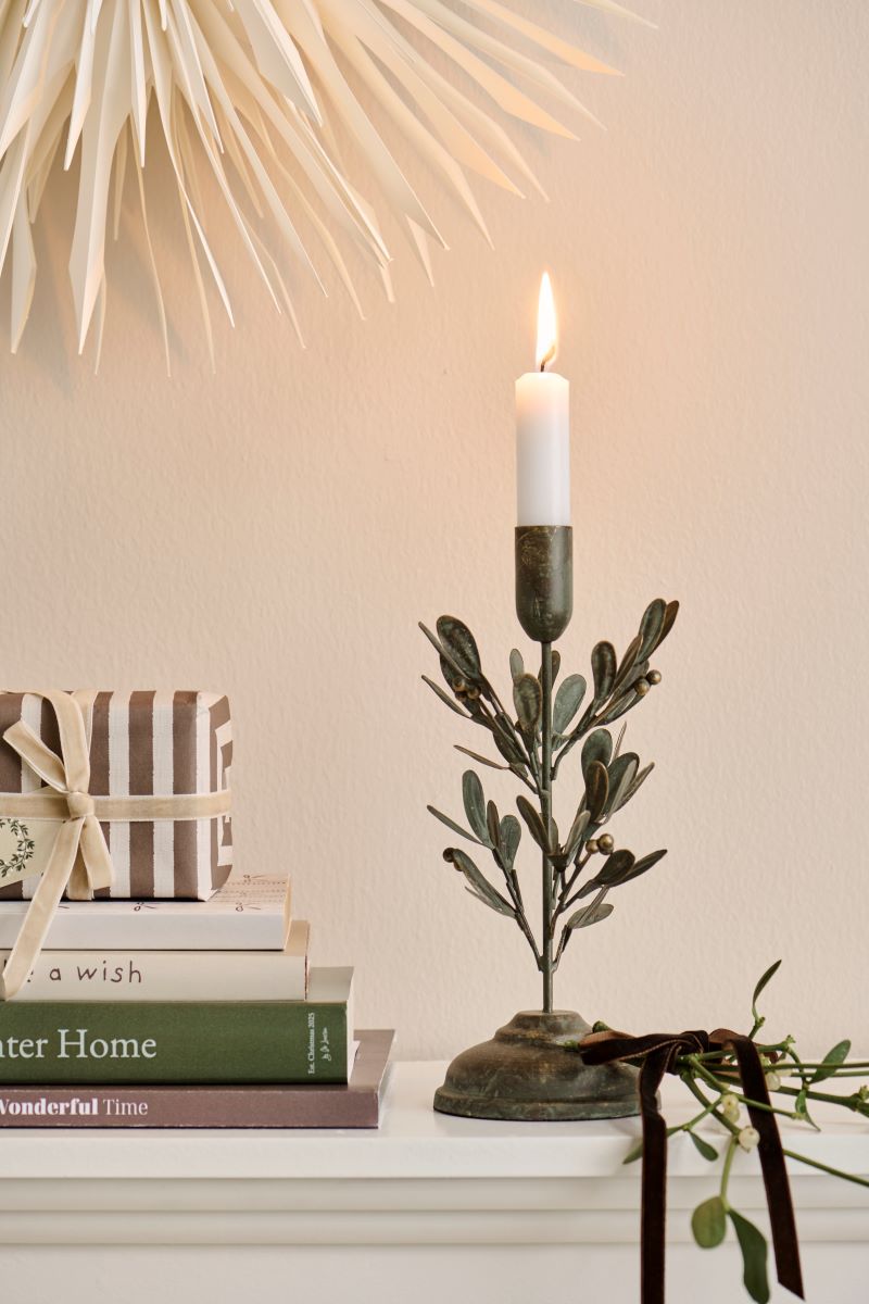 Skab en hyggelig og stemningsfuld atmosfære med denne smukke lysestage fra Ib Laursen. Lysestagen er formet som en mistelten med fine blade og små bær, der giver et elegant og naturinspireret udtryk.
