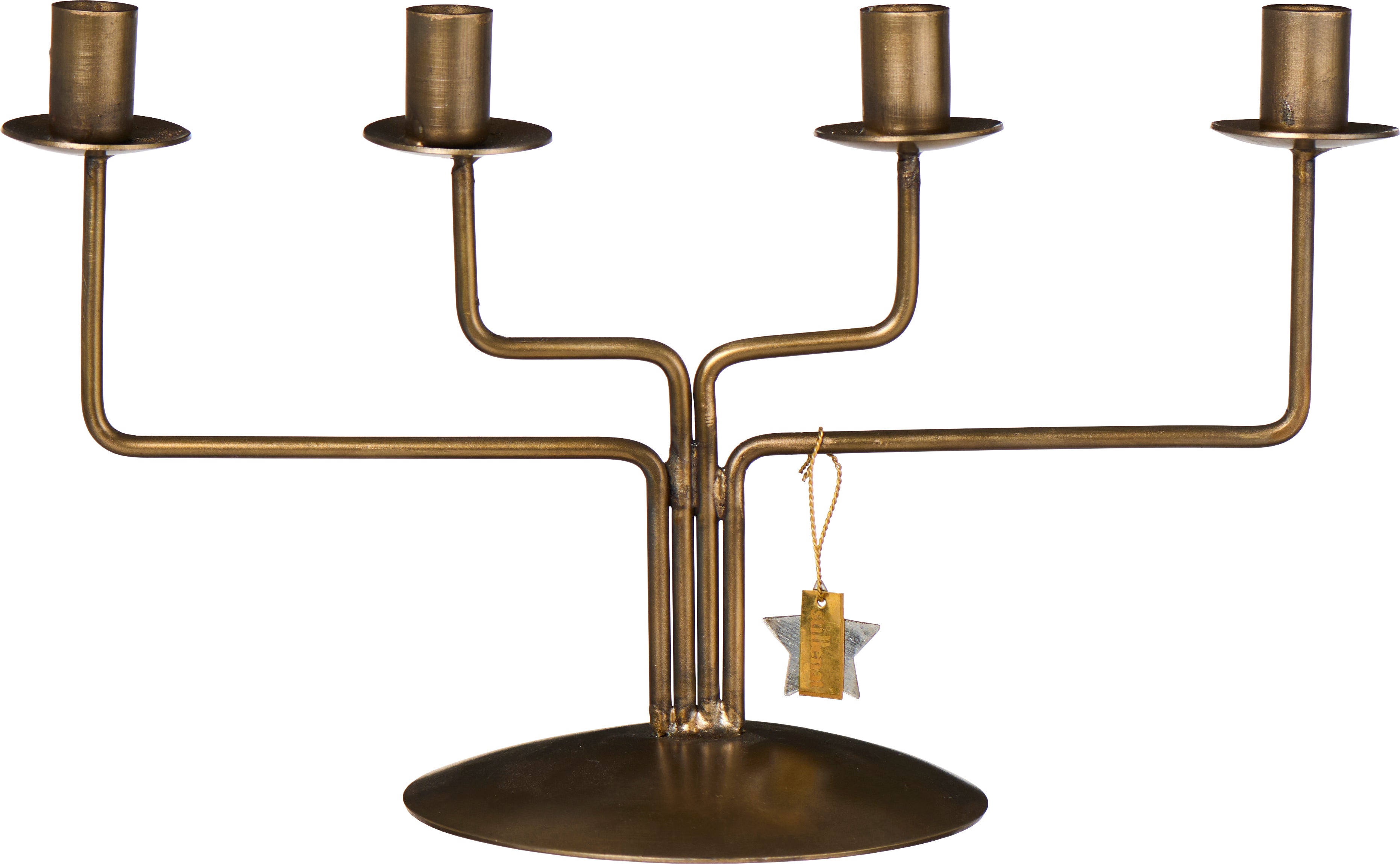 Skab varme og stemning med denne elegante lysestage fra Ib Laursen. Den har et moderne, grafisk udtryk med fire arme og en mat messinglook, der bringer et strejf af klassisk hygge ind i både stue og spisestue.