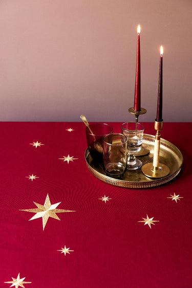 Langkilde & Søn rød dug med guldstjerner 135x240 cm