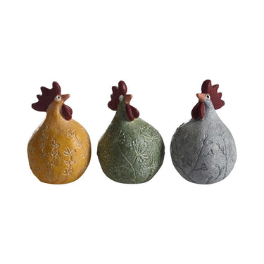 En fin lille farverig trio af høns. Farvesammensætningen gør dem idéel til påske men også til at stå fremme hele året rundt.