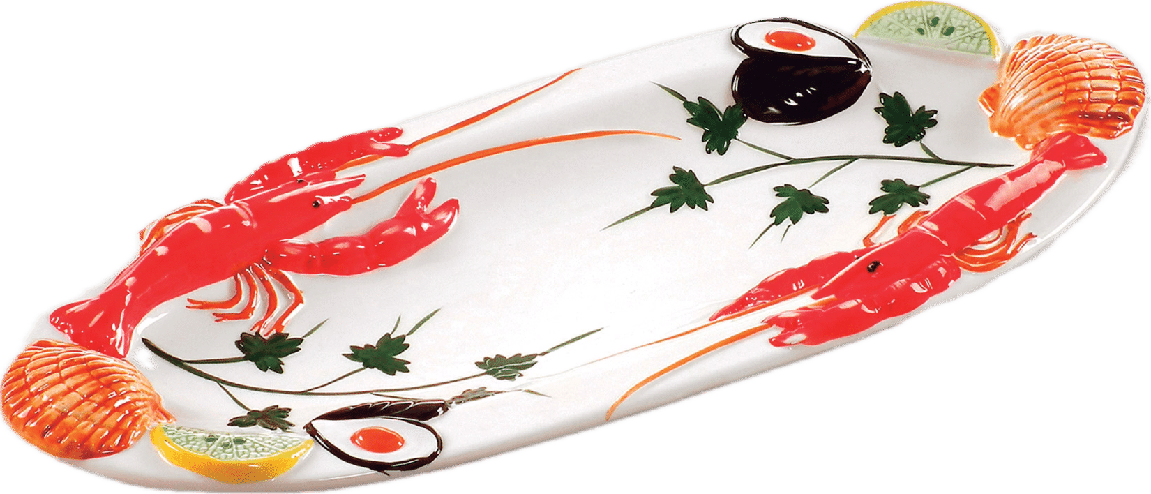 Dette lille, ovale serveringsfad er perfekt til servering af fisk, skaldyr eller andre retter – og kan også hænges op som en dekorativ detalje på væggen.