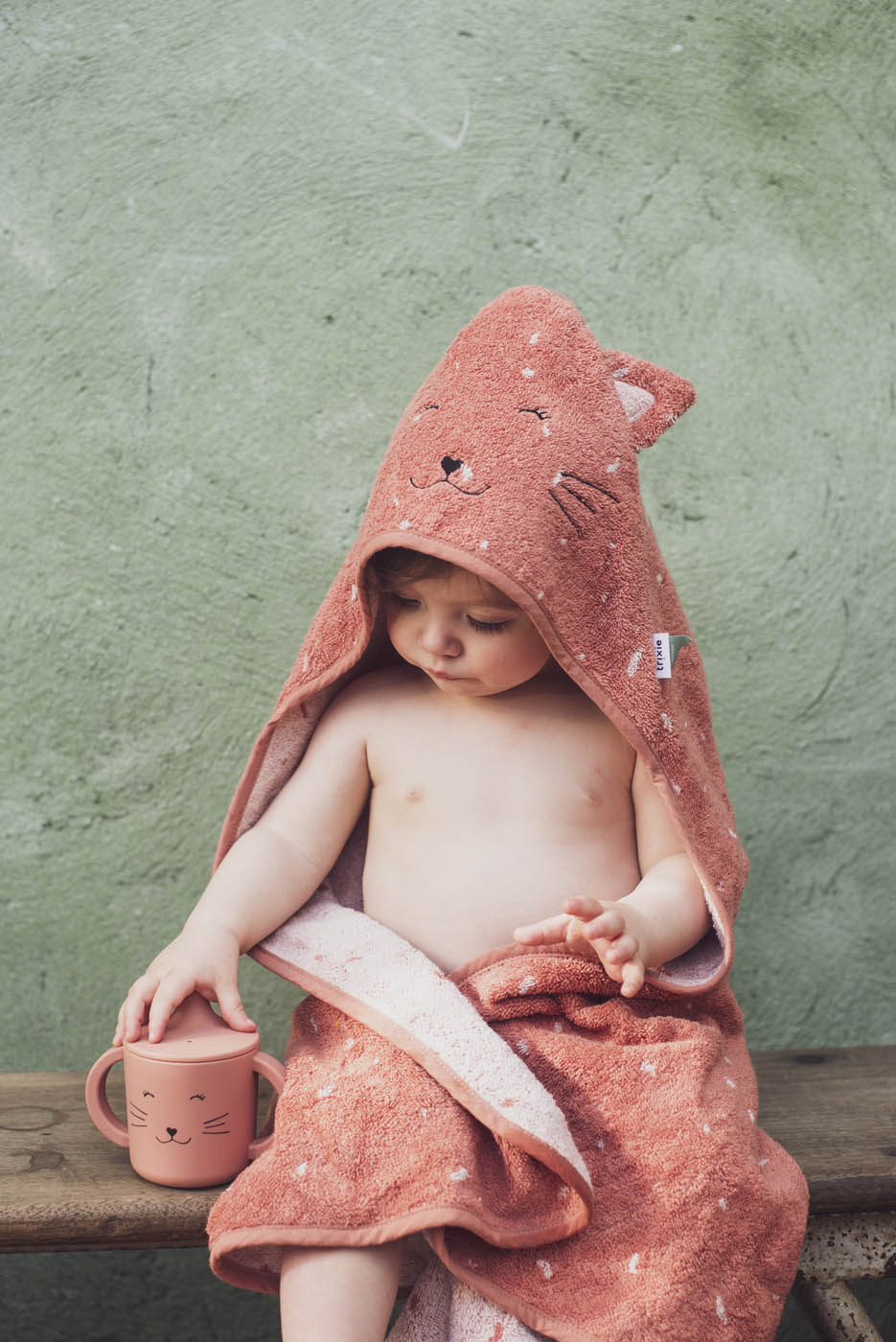 Den praktiske hætte med de søde ører og katteansigt holder barnet varmt og trygt efter badet.