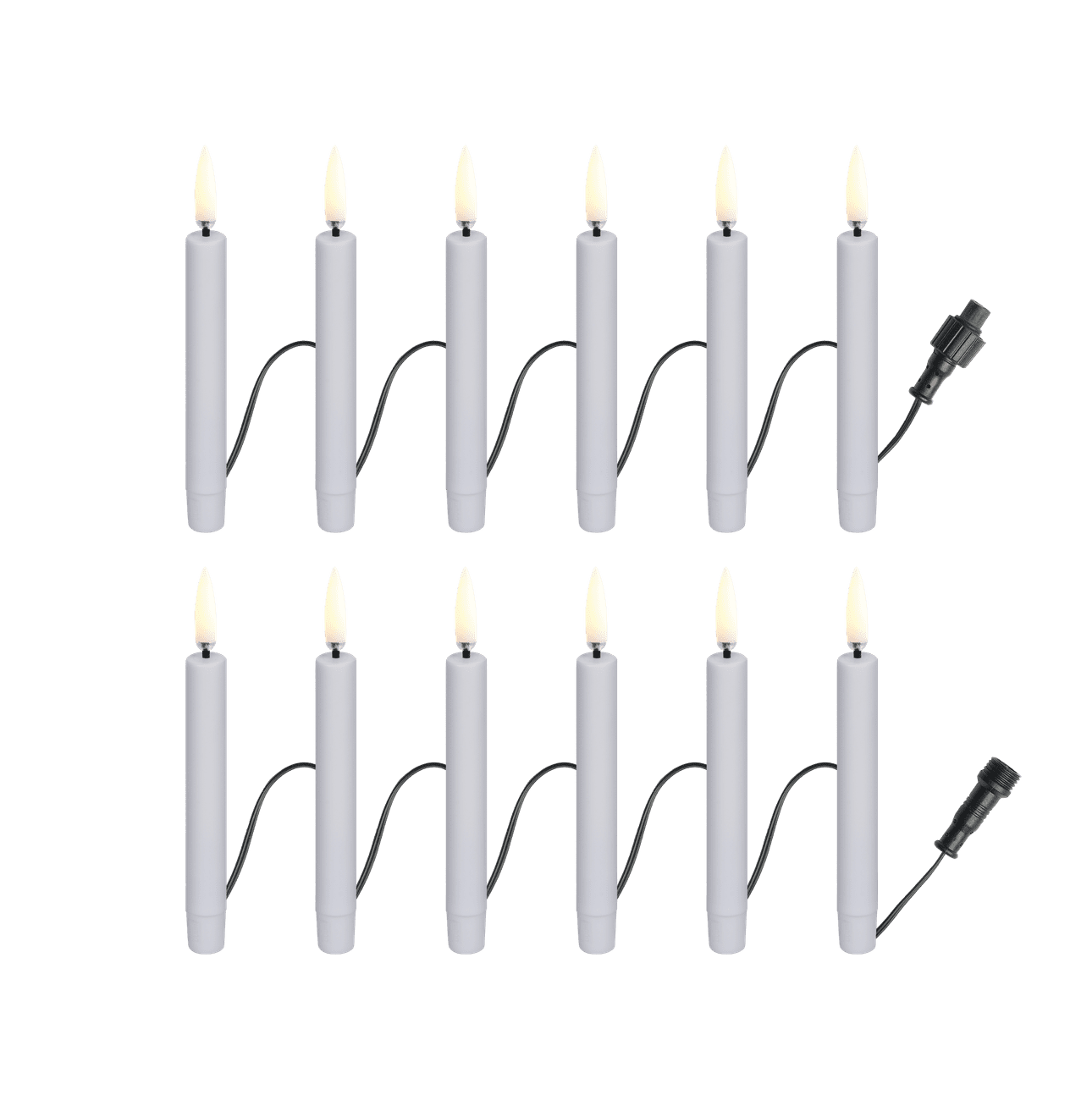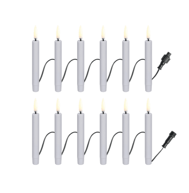 Skab magisk julestemning med dette smukke sæt af 12 små LED stagelys, der er forbundet med ledning og gør pyntningen nem og dekorativ. Perfekt til juletræet, guirlander eller andre festlige dekorationer – du får den hyggelige glød af levende lys, helt uden brandfare.