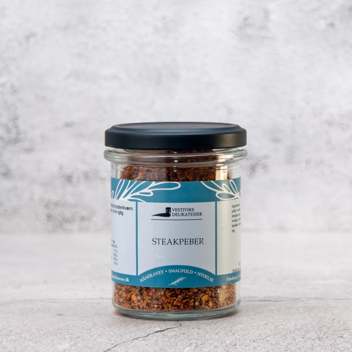 Stærk og sød steak peber fra Vestjyske Delikatesser. Passer perfekt til en god bøf.